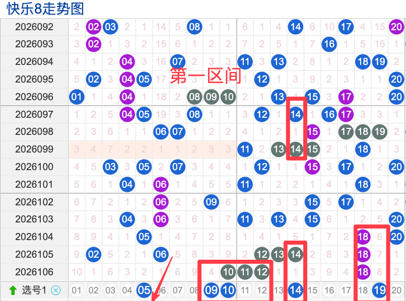 上期一区开4奖号(10.11.12.18)上期回顾一区开4个奖号一区间的奖号在上期呈现了递减的趋势,本期先来看号码05具有一定的间歇性,近期比如有时会间隔5到3期次出现,整体出现频率还是比较热,号码09活跃度近期较稳定。有一定的间歇性,间隔上来说的话还是很稳定的,整体走势有一定的波动性没有明显的冷热趋势变化,出现的频次近期比较稳定。号码14活跃度相对还是很稳定,近期没有明显的连续出现态势,偶尔间隔多期会出现一次整体表现较热。