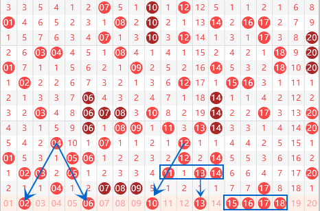 上期连号空一带号02 03 05出了夹号04号数字,那么本期我们就要注意02 03 05的断号情况了,这里做一下防守就行了。上期开出了连号07 08 09,本期我们要做一下防守出重的情况。连号空一带号11 13 14上期没能出重号,那么本期我们就要防守回补的情况了,重点关注一下13号数字的出号情况。连号15 16已经遗漏7期没有出号了,本期我们要注意落下一个号码的情况。本期的17号数字我们也是要注意落下重号的情况的。