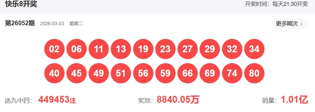 上期锦上添花胆45命中 凯哥快乐8第2026053期号码分析