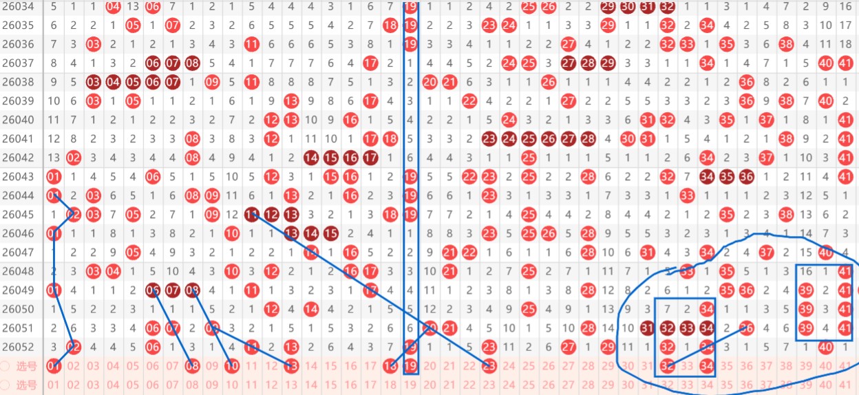 【第一区间1-40】上期开出11个号码。本期分析推荐:01-08-10-13-18-19-23-32-34九个号码。0形态号码,同时为1尾斜连号,看好与10背靠背开出形态;08-10偶数连号三斜连,常见出号形态;13奇数三斜连、3尾斜连,同时看重;18斜连三期,和上下对称形态号码19有望以对子形态开出;23同路5期号码,作为防守考虑;32偶数斜连号,和34同出趋势,32-34与39-41同形态。区间推荐重点号码:一小区间08-10-19,二小区间32-34。