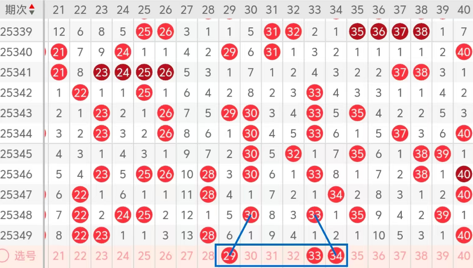 第二区间的走势分析:第二区间上期开出了四个号码球,主要的落号点位在二区间的前半区,走出了一奇三偶的形态走势,上期二区间的前半区落下了三个号码球,后半区落下了一个号码球,整个二区间处于走冷的趋势,根据二区间的走势规律,今天的二区间我们主看二区间中间位置号码的落位,前半区主看29的落位,走出了夹码和边码的走势形态,再看33 34姊妹对组合的落位,走出了冷热码组合的走势形态,这三个号码球建议大家打个三胆拖,或者打个三码复二比较稳妥,参考为主!
