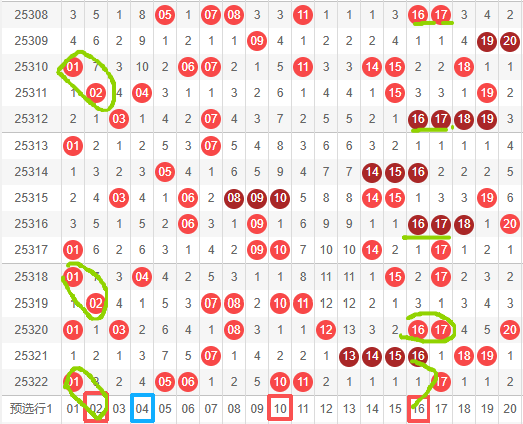 04: 04在一区属于冷号,15期内仅开出2次,有一期与02同时开出,另一期与02斜连开出,本期推荐02,04偶数连号,同时开出。