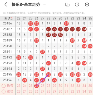 26码,如上图所示,与往期奖号27 28码形成一个斜3连,所以看好。
