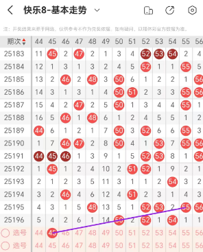 45码,遗漏间隔为2.7.4,形态为倍数号,且如上图所示,与往期奖号50 55码形成一个隔4的斜3连,所以看好。