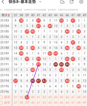 39码,遗漏间隔为3.4.6,形态为倍数号,且如上图所示,与往期奖号40 41码形成一个隔2的斜3连,所以看好。