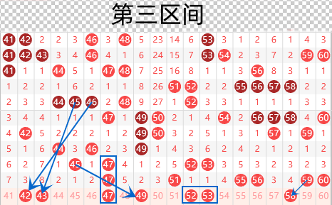 下图为41-60号数字区间走势分析图: