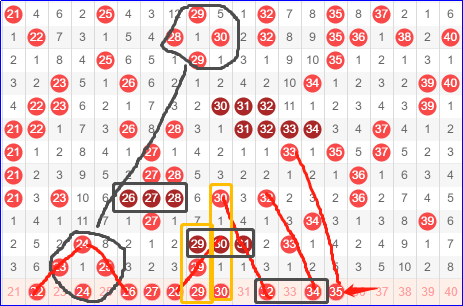 第二区间号码21-40,二区这一期有点彻底凉凉,不仅看好的号码没出,出现的全部都是比较冷的号码。这对我们下一期造势应该说是做好了铺垫,毕竟前面出现过这样的走势,下一期再出连号也是理所当然的事。