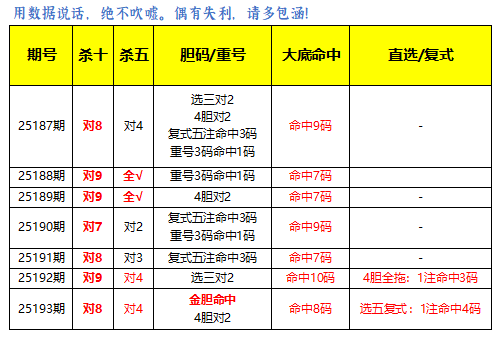 免费版仅开放大底号码和部分杀号, 更多杀号、胆码发布在会员专区。