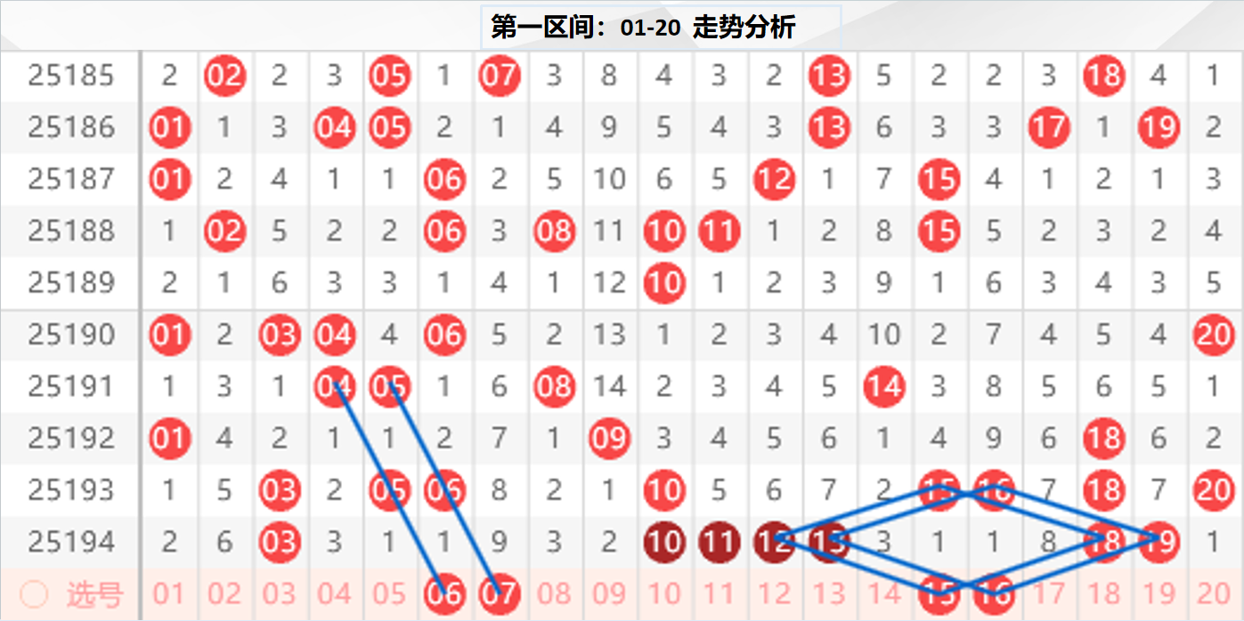 一区分析:【01-20】(走势图标注号码非小黄车大底,请谨慎参考,具体思路将在直播间分享讨论)