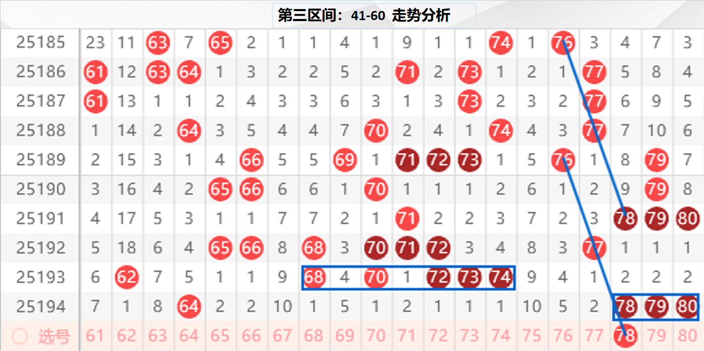 四区分析:【61-80】(走势图标注号码非小黄车大底,请谨慎参考,具体思路将在直播间分享讨论)