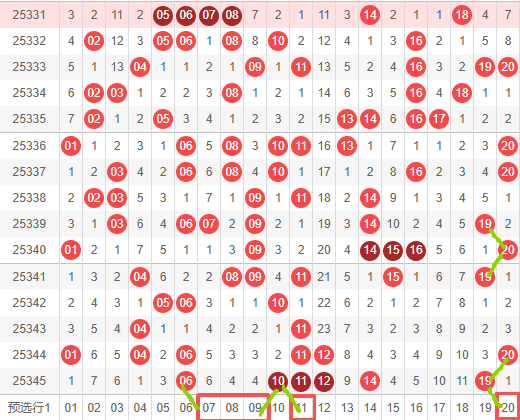07+08+09: 上期开出了06,10,中间07.08.09轮空,我们看图,07是该出了,08.09前几期都较热,本期推荐07.08.09这三个号会出个两连号,或者三选一。