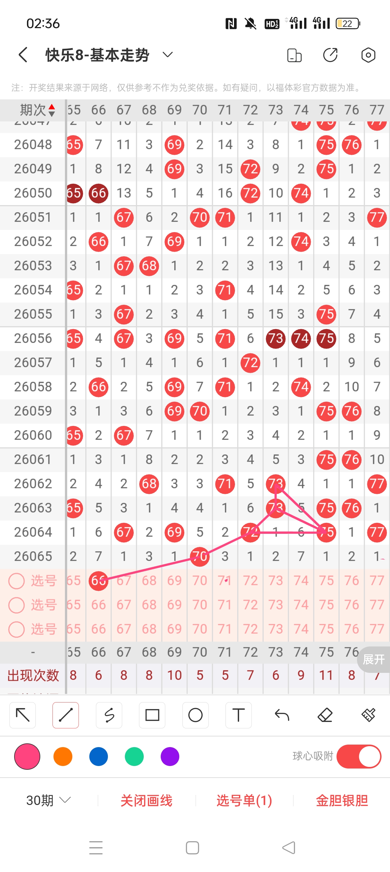 6、分区法:快乐8共分为4个区,一区:1-20,二区:21-40,三区:41-60,四区:61-80。