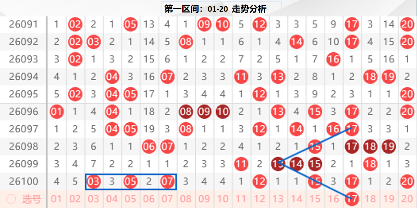 一区分析:【01-20】(走势图标注号码非小黄车大底,请谨慎参考,具体思路将在直播间分享讨论)