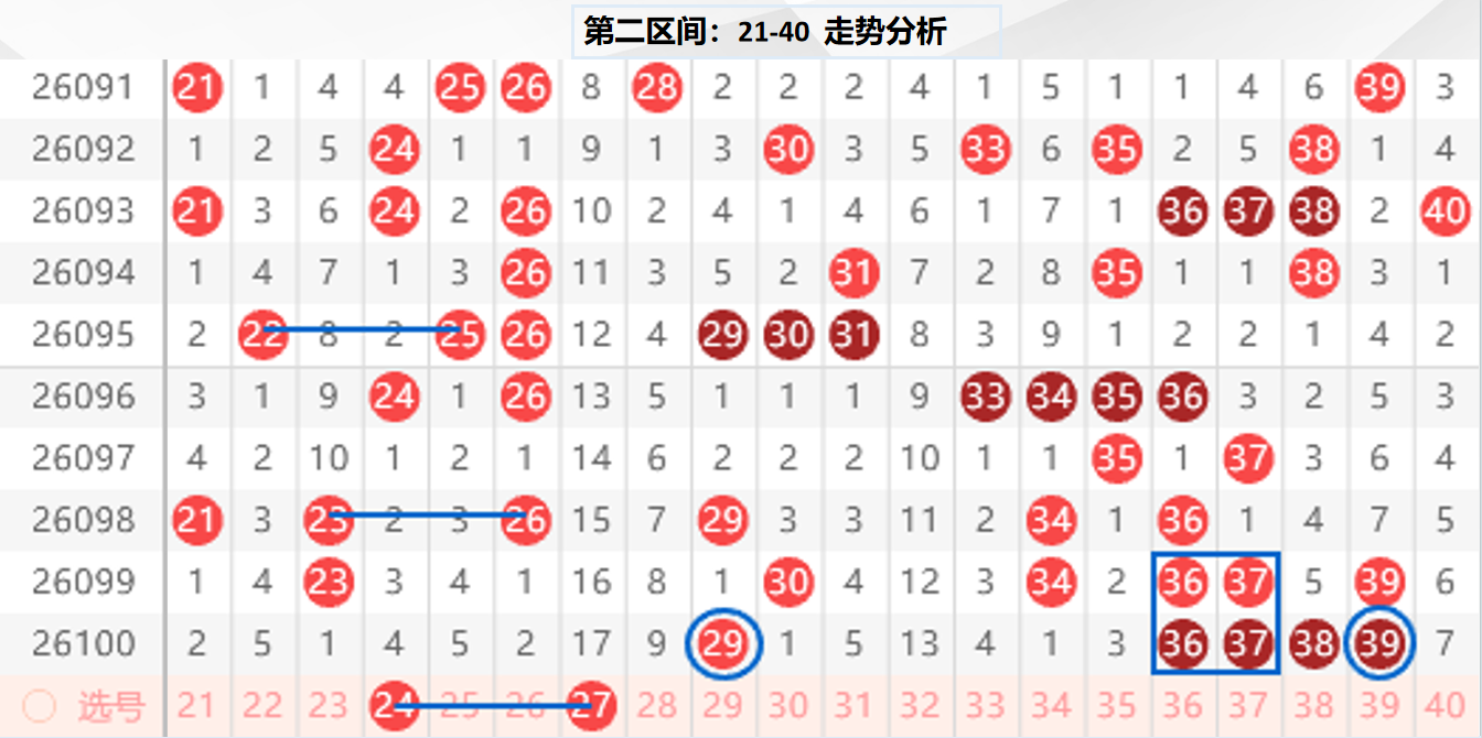 二区分析:【21-40】(走势图标注号码非小黄车大底,请谨慎参考,具体思路将在直播间分享讨论)