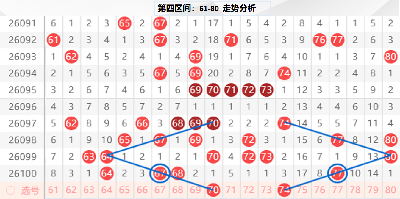 四区分析:【61-80】(走势图标注号码非小黄车大底,请谨慎参考,具体思路将在直播间分享讨论)