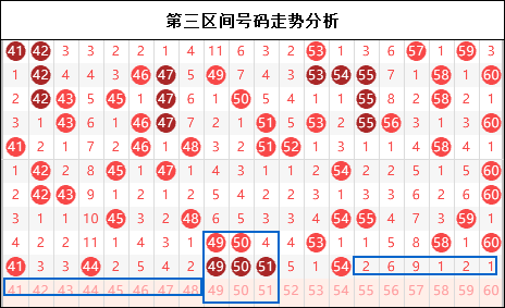 第三区间思路:三区如果你能看懂我标注这三个蓝色框框的意思,那今天第三区间将是你飞黄腾达的区间。因为昨天我们在这里精准的预测了后半部分号码会进行缺失,既然昨天的预判在这里准确,那今天的形态和走势我们就可以稳稳的拿捏。当然了前提条件是昨天在我直播间你真的听到了这里的走势没有。如果没有的话,那今天你一定要来直播间,我们在三区拿下你今天所有需要的胆码,成就你今晚的梦想。