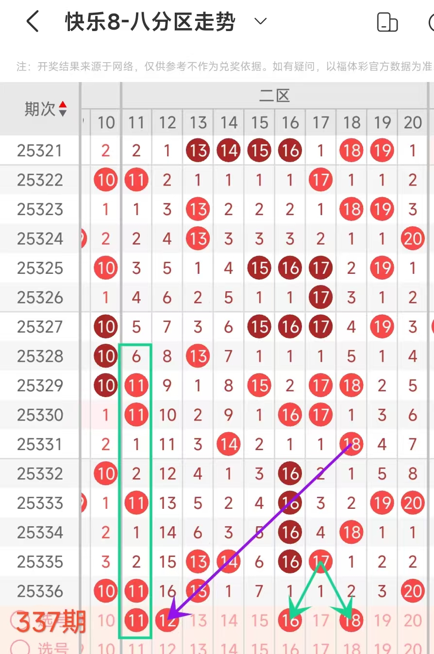 上期二区开出 11 13 20这2个号码,本期应该出3个左右。