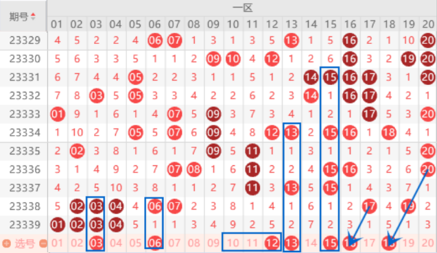 该区间上期开出了01 02 03 04号数字的连号,本期我们要注意出重的情况,重点关注一下01 04号数字的重号。连号06 07号数字本期我们也是要做注意落下一个号码的情况的。本期的10 11 12号数字我们要注意出一个号码的情况,重点关注一下10 12号数字的出号情况。本期的13 15号数字我们要注意出一个号码的情况。本期的18号数字走势很好,但是由于很热,我们做号小心一点,不要过多的做号。