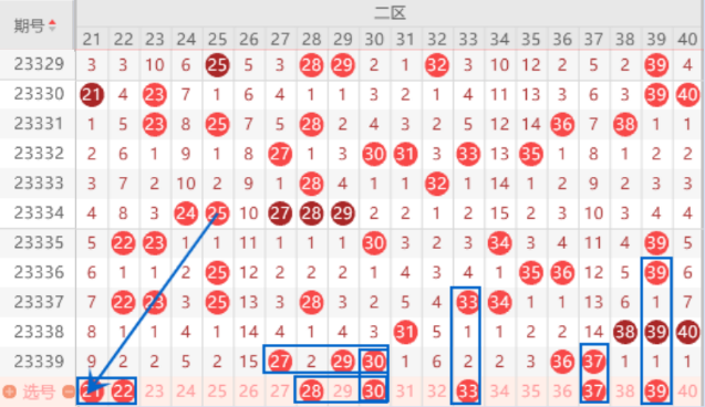 下图为21-40号数字区间走势分析图: