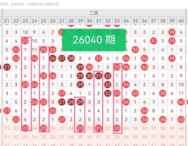 上期第二区间开奖5个号码,本期可能会稳定开出。区作为中段核心区域,号码活跃度持续稳定,23、25、29形成连贯的奇数梯队,31、33延续奇数节奏,同时搭配区间内的间距分布,避免密集扎堆,贴合近期中段号码均匀开出的特点,组合稳健且适配整体走势节奏。