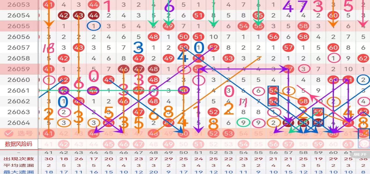三区间推荐主做号码41 44 48 50 52 53 60 防守号码43 55 59;