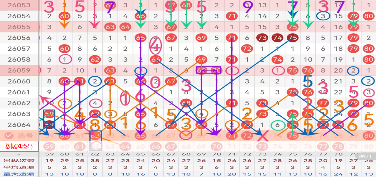 四区间给到主做号码球62 65 71 72 75 80防守号码63 68 74 79;