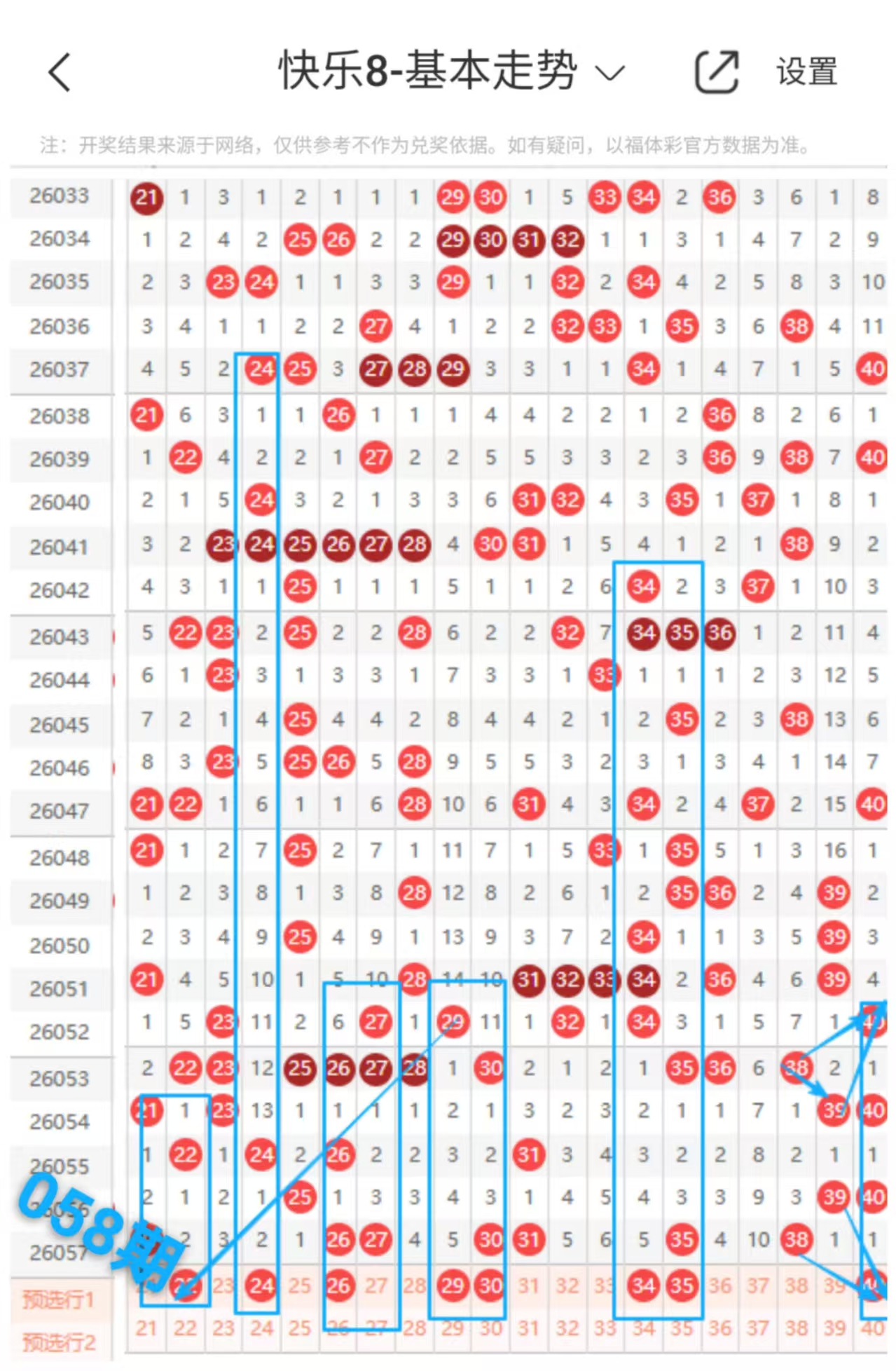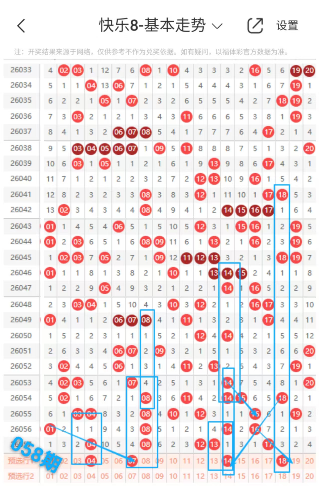 快乐八058期走势分析(本期机会不错+继续跟上吃肉)