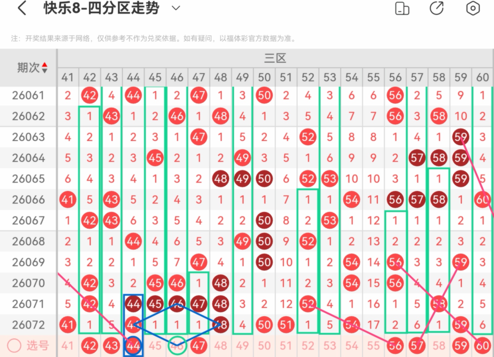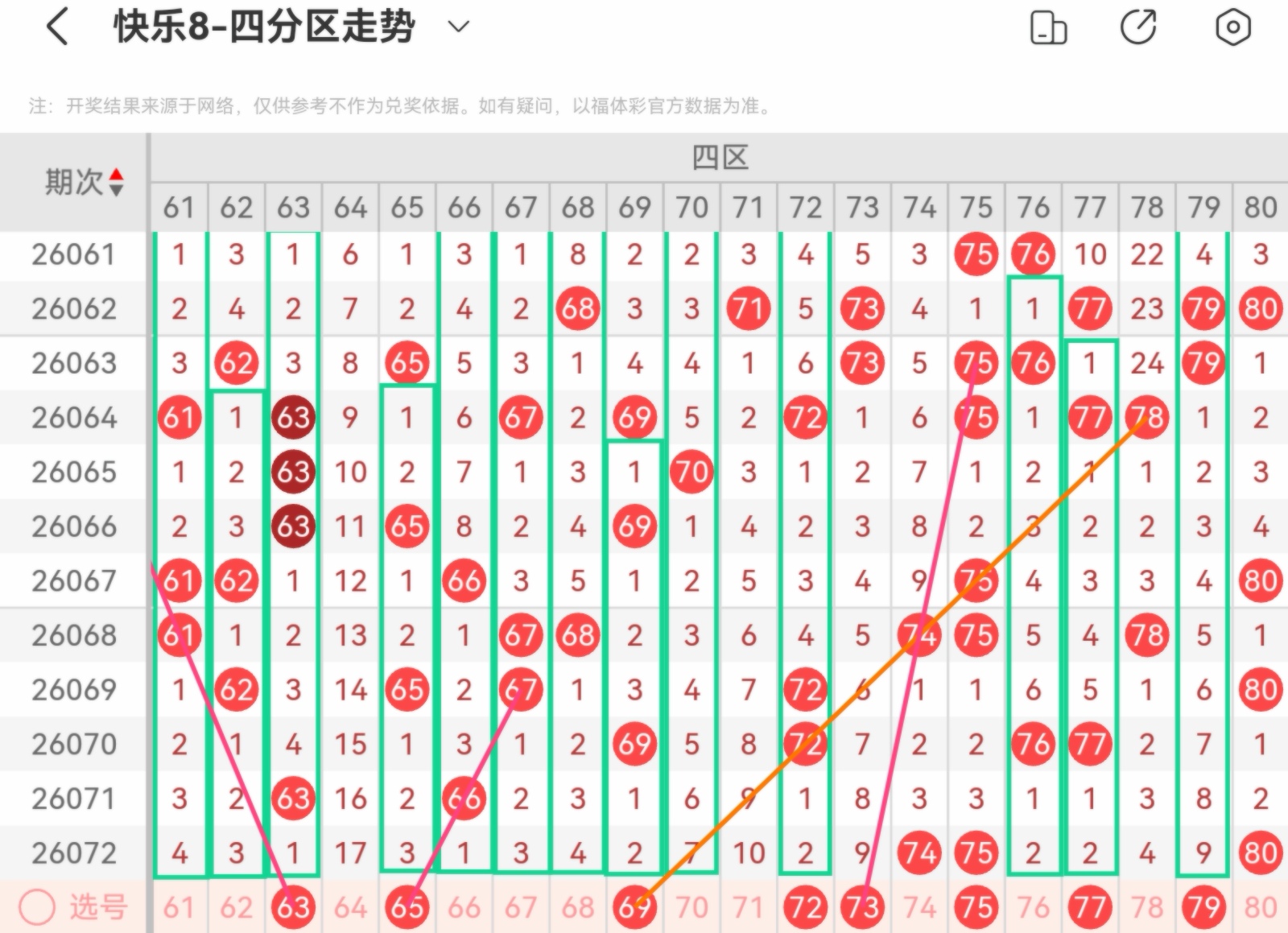 下面我为大家分享一下快乐八第26073基本走势分析: