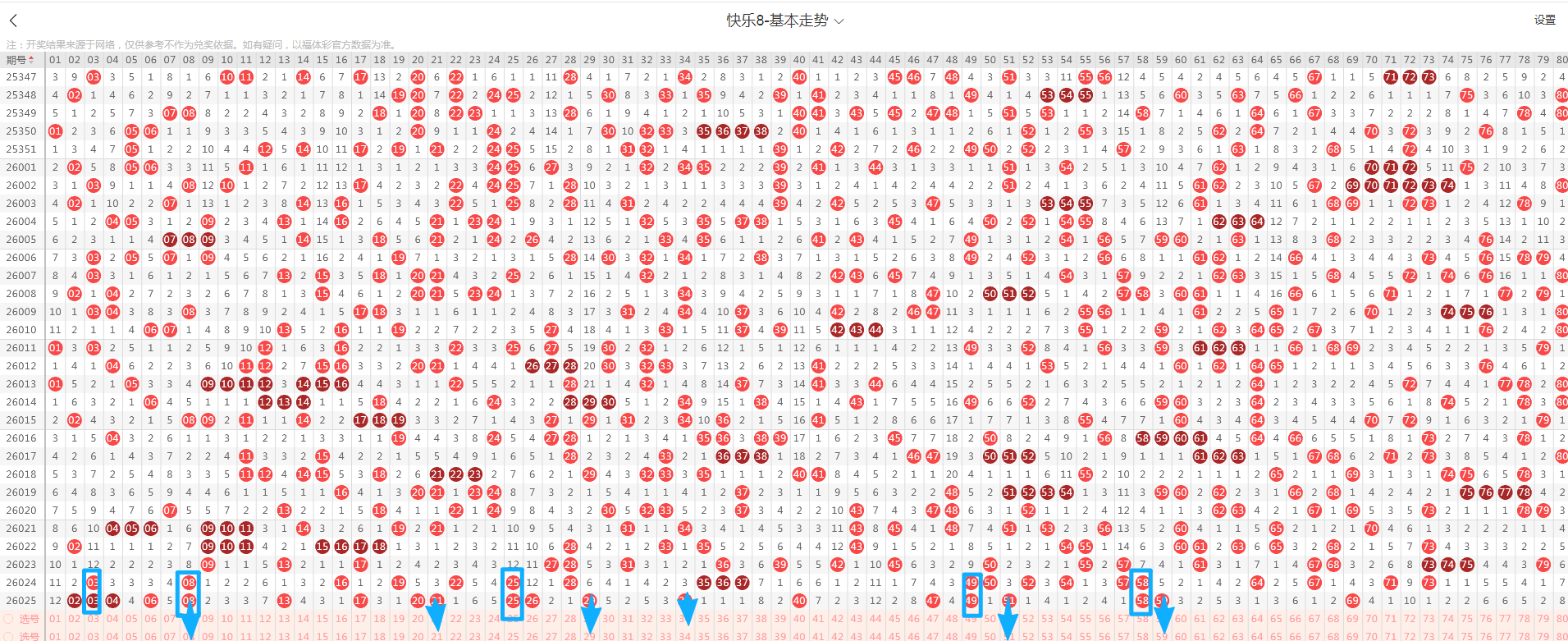“专注快乐8,开心快乐吧!”您好,我是九尾锦鲤,有幸与您在这里相遇。上期(快乐8第2026025期)分析和推荐部分正确!今天组号上会继续努力!小车方案已精选优化,期望对您今天的选号、组号有所帮助。下面是我关于快乐八2026年第026期的走势研判分析及精选推荐。
