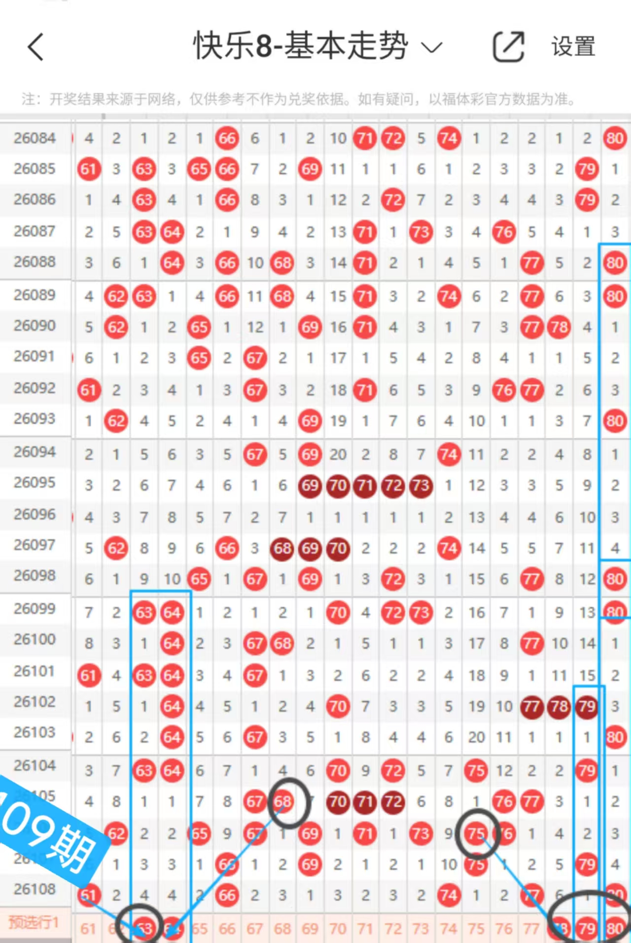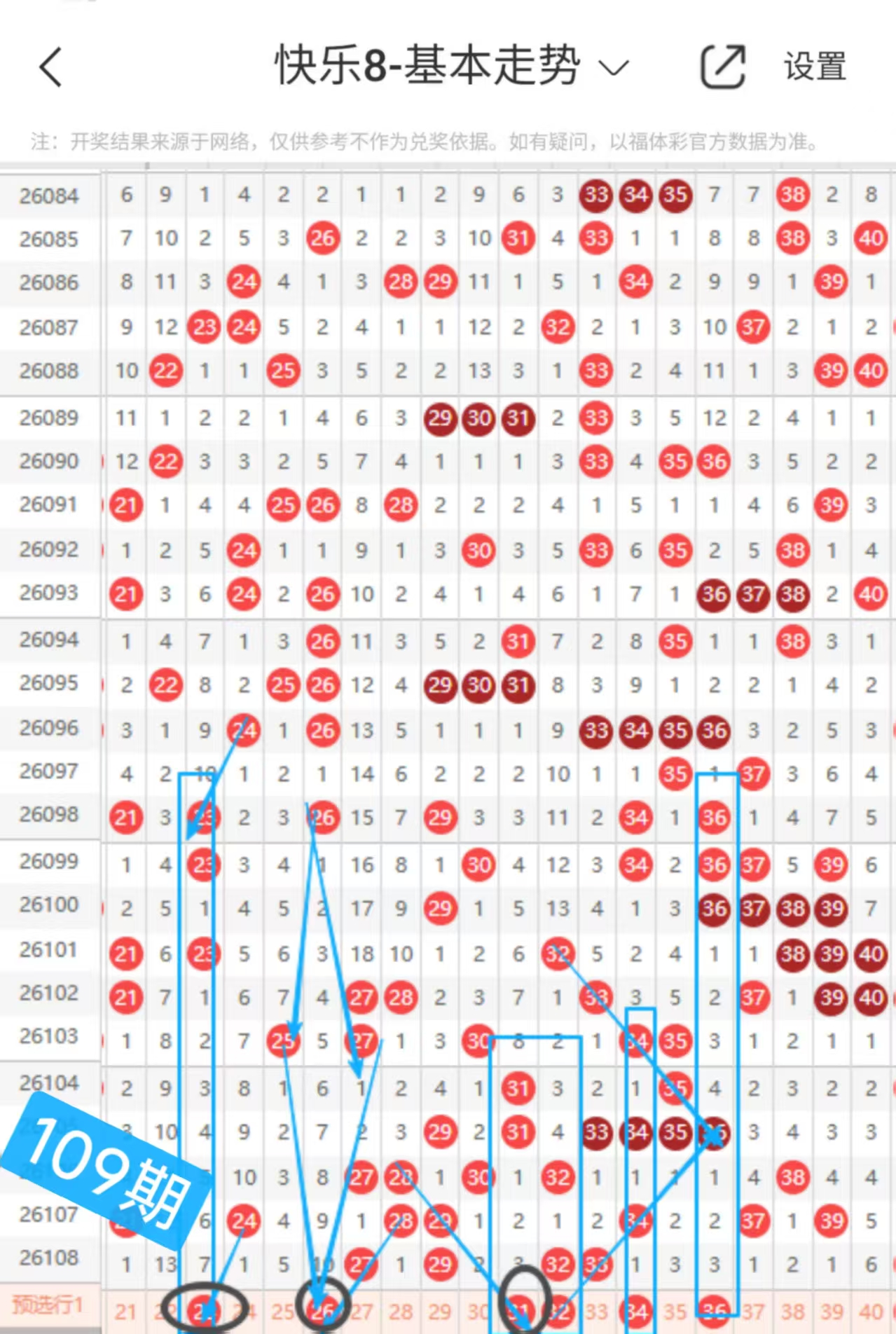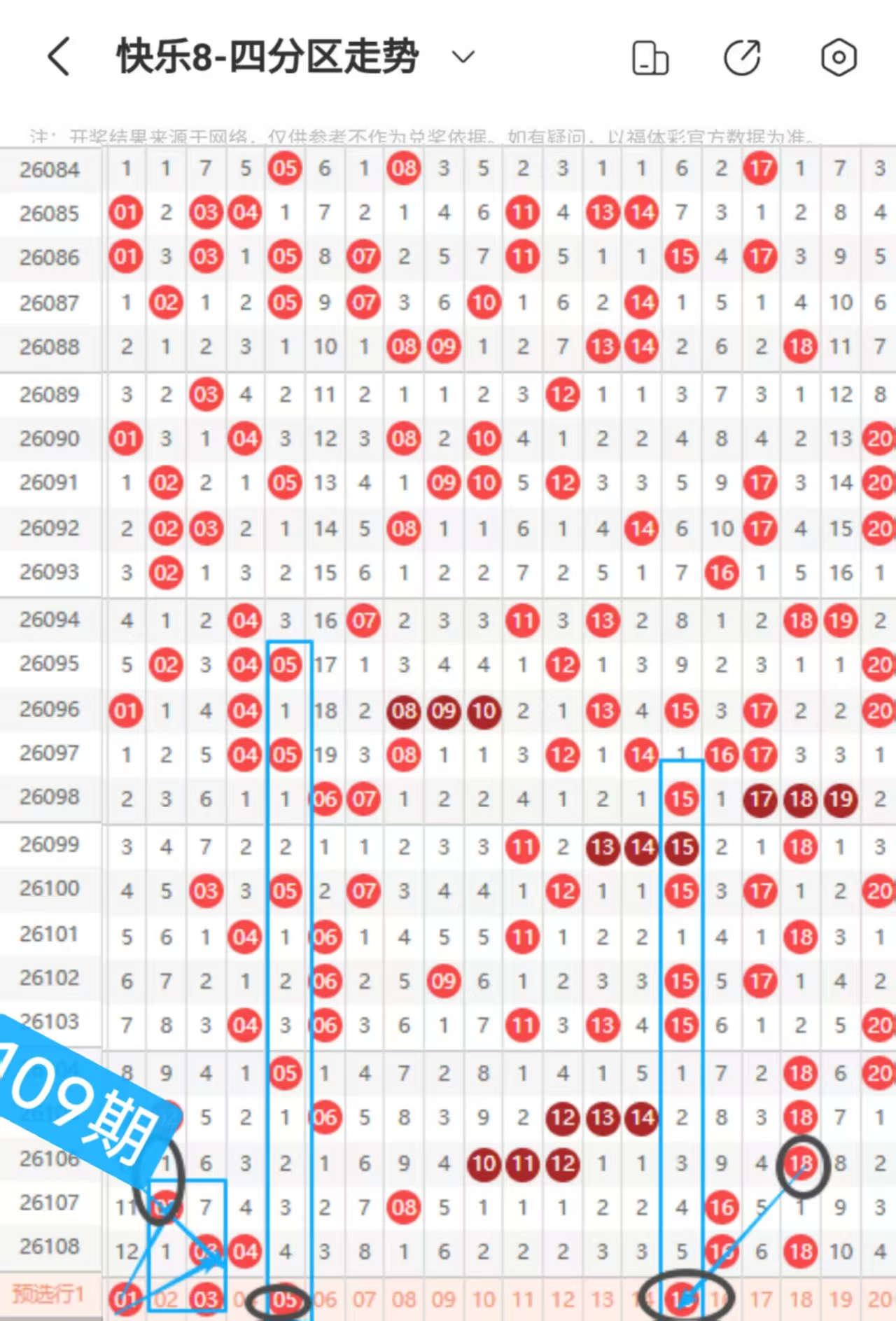 快乐八109期走势分析(本期机会不错+继续冲击全拖大奖)