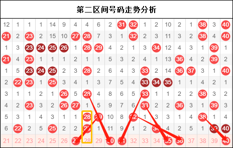 第二区间果然是具有周期性的,在前天出现四码之后再一次转回六码。尤其是我们昨天重点分析的地方,想了千万种可能,唯独是放弃了是陷阱的一种,好在还有一个39算是出现了。随着这些号码的出现,我们发现二区如同一区一样,开奖号码在区间上的整体布局越来越显得无比均匀。这其实是一种比较好的信号,至少我们不再担心出现什么大的空白区域去补号。下一期多注意走势号码应该是没有错的。