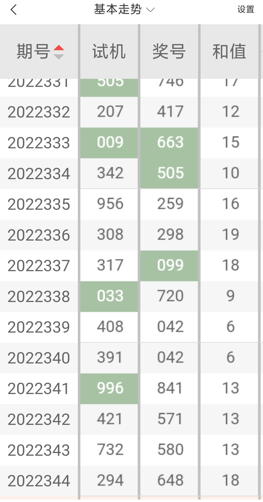 开奖和值近9期奇偶比是5:4,其中和值13连出3次,然后跳到和值18,结合试机号和开奖号码以及开奖和值汇总表,分析和综合观察和值走势方向,我们可以适当的参考,小编建议参考的和值范围是12~21