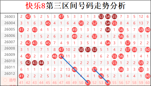 二区上一期在三期缺失连码的走势下直接回补三连码带两连的布局,而且嗨打破了区间长期没有三重走势的布局。所以相对来说二区已经破除周期开始回补,这种走势对于本期本来是大好的趋势,但是上一期二区出现了七码布局,这也就说明本期二区不排除多转少的走势出现。毕竟连码走势讲究的是节奏轮动,二区爆过之后大概率会进入短暂休整。本期重点关注【25-26】与【34-35】的双卡位布防,谨防冷码突袭打断热链。同时留意【21-22】作为龙头回补的可能,斜连形态或再次激活局部热度。切记不可重仓追高,轻打快撤才是应对变盘的最佳策略。而且后端上一期没有出现号码,且区间冷码相对比较多,近期必然出现冷码的回补走势。