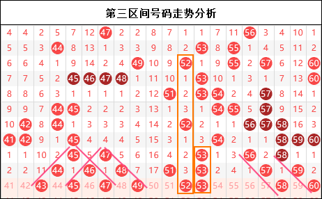 第三区间思路:三区走势真的漂亮,清一色的邻码布局。昨天我们在三区也是拿下了三码,虽然路线上走的是连号布局,但是至少在思路上是贴近了开奖的趋势,近期区间上几乎都在复制前期形态布局,这一点要深深的抓住,机会才不会溜走。本期三区面临的最大布局全部都是三斜连,昨晚三斜连整体上达到了五码的开奖,且看本期三区能不能爆发出来,且在三区开出篱笆墙的走势。