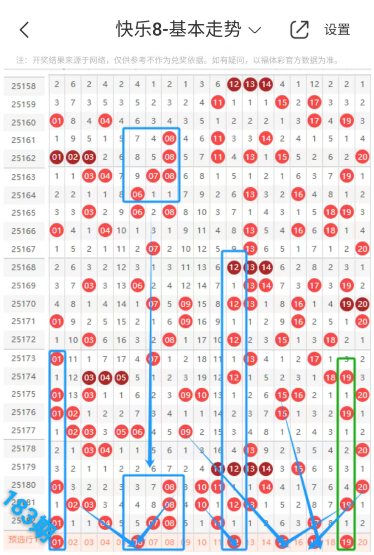 快乐八183期走势分析(本期走势不错 继续跟上吃肉)