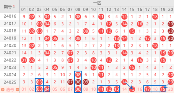 下图为01-20号数字区间走势分析图: