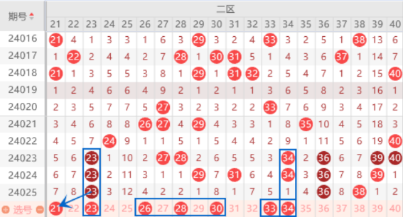下图为21-40号数字区间走势分析图: