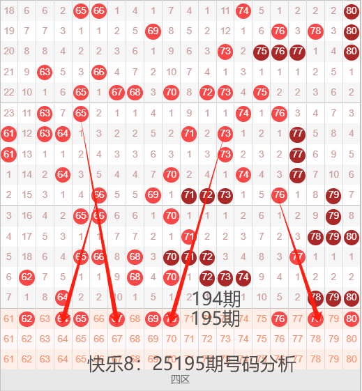 回顾25194期开奖号码:03 10 11 12 13 18 19 27 36 37 40 41 42 46 51 59 64 78 79 80 ,最近一段时间号码爆区几率特别高,目前已经连续多次出现爆区热开的情况,爆区之后基本上都是迅速回调,转换至其他区间继续暴热,大家若是能抓准区间,或许有很大的机会,但是号码的变盘规律是非常的快,很难把握,个人建议谨慎选择,不要 盲目的去操作~~