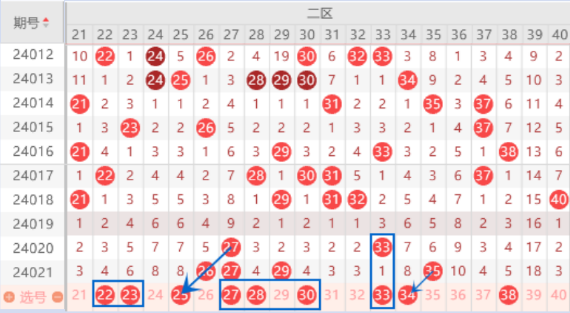 下图为21-40号数字区间走势分析图: