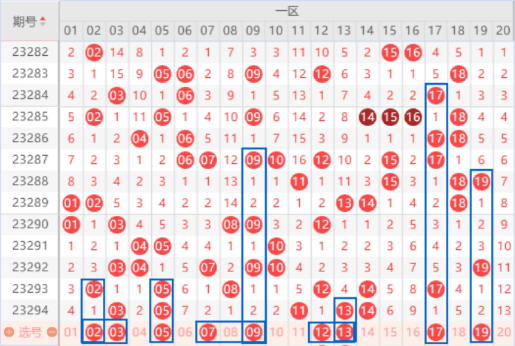 该区间的02号数字我们要注意一下,会出现回首掏的情况的,出号机会还是比较大的。03号数字我们注意一下出现重号的情况。本期的连号空一带号07 09 10号数字我们要注意回补情况了,毕竟09 10 12的连号空一带号也是在遗漏2期的时候回补的,重点考虑一下07 09的出号情况。本期的连号空一带号11 13 14号数字我们也是要注意出重的情况的,当然重号做防守,重点关注一下夹号12号数字出号情况。本期的17号数字是属于151走势,本期的151走势有两个,这里出一个是没有的问题的。