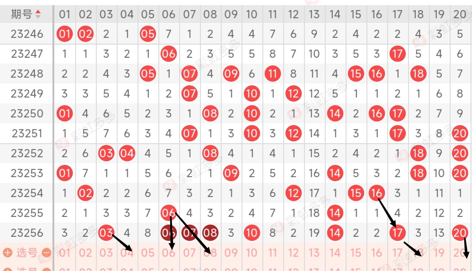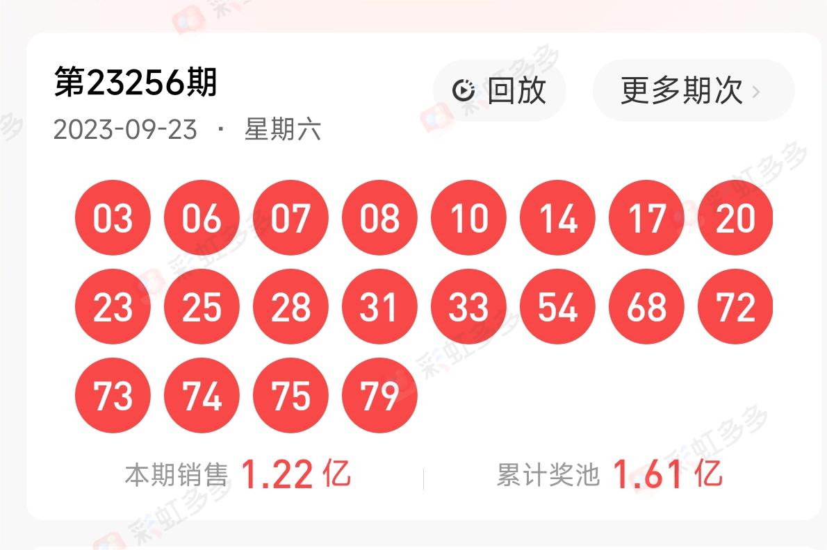 首先回顾上期的开奖号码:03 06 07 08 10 14 17 20 23 25 28 31 33 54 68 72 73 74 75 79