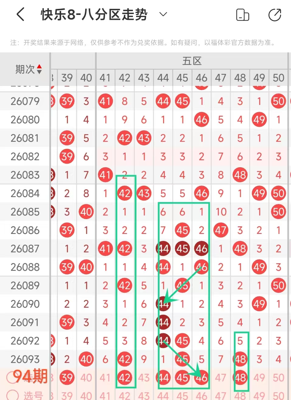 上期五区开 42 45 48这3个号码,本期该区应该出号3个左右