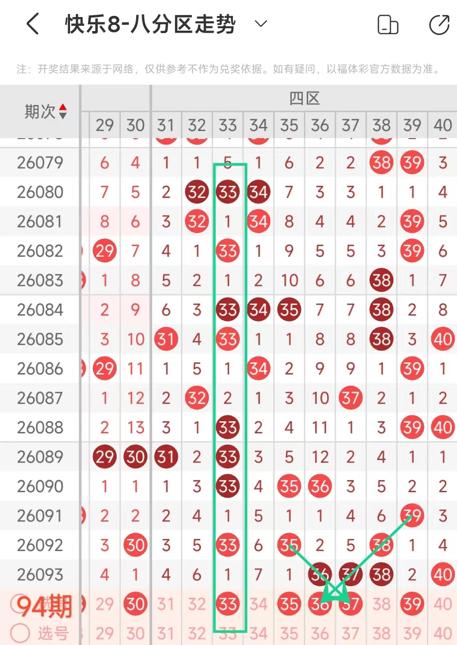 上期四区开出36 37 38 40这4个号码,本期考虑3个左右。
