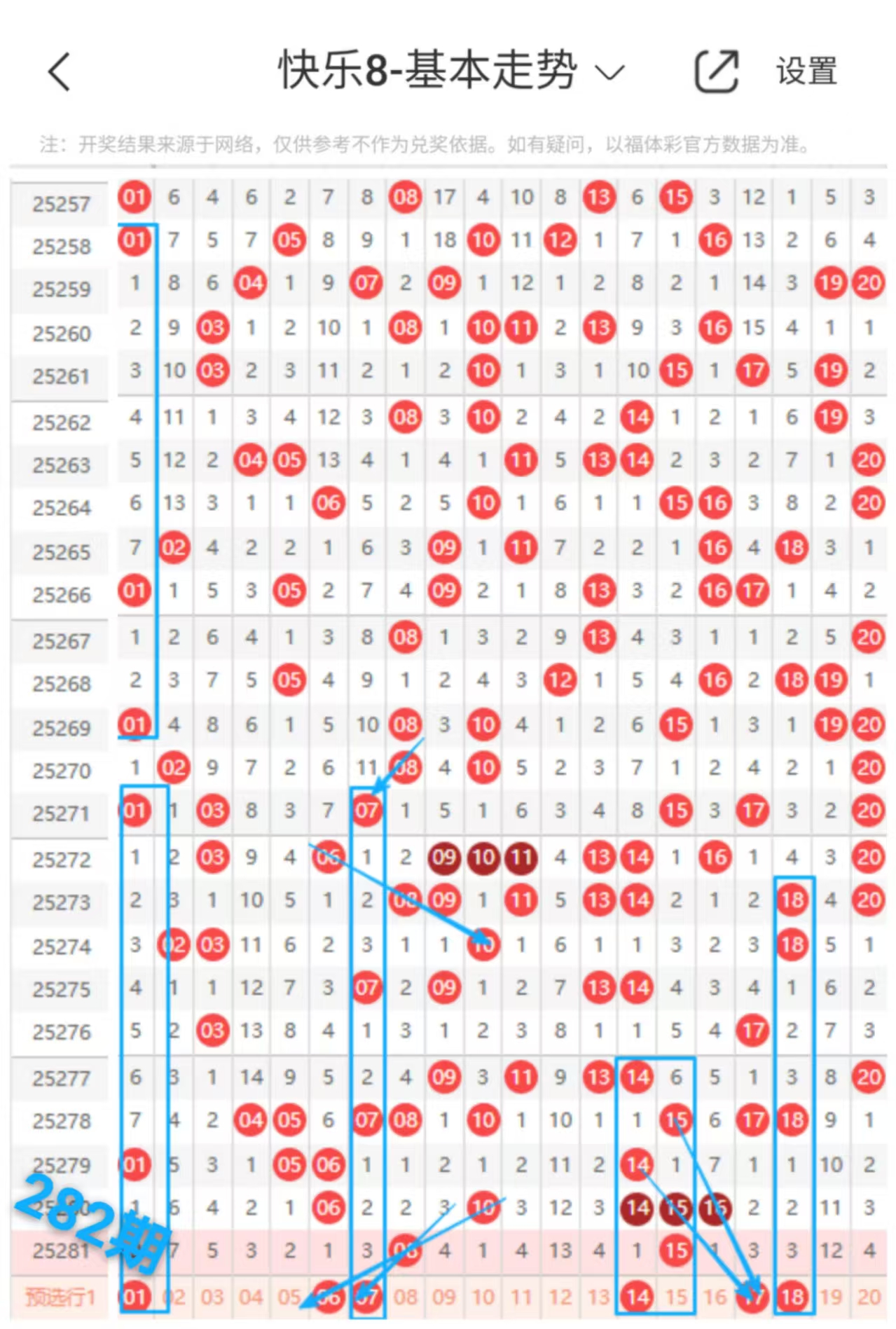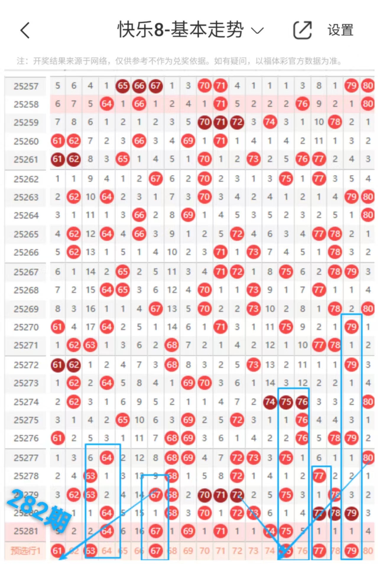 快乐八282期走势分析(上期金胆中+选二中+继续跟上吃肉)
