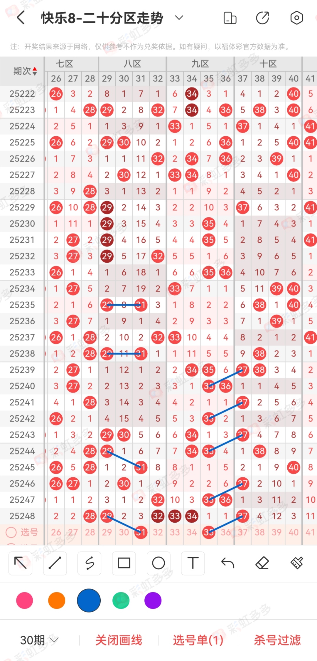 目前的基本走势大家会不会觉得就是正儿八经的顺位。我们先看一下这里的35明灯,近30期的数据里面存在很多次37顺位35。这里的35在近30期数据里面还存在很多关联号码。比方说我们近期的35和65同出是不是一个高频。我想说今天很多人都会考虑35顺位,65可能一般人不会考虑。额外的这里我给大家提供一个点位组合参考。昨天的数据,比方说金蛋21的点位,02 21在近期是热组合,但是昨天的专属也跟大家说过,02是属于一个避坑号码,这里的逻辑能不能用在这里。今天35和65最多也只能出现一个。当然这里的35我想说的点是,这里存在避坑思路。回过头来看一下昨天出现的点位,21 22同出,历史数据出现过的规律是29 31同出,然后有机会顺位21或者22。但是昨天的数据是反过来,所以也就是说今天可以出31,但是31 35不会存在同出。所以这里35有避坑可能。当然这里的号码还是能够开出来的,毕竟还没有开奖,只是在预测前,我会把我的想法给大家说一声。只是今天我的感觉非常好,上半个月中了多次的选三中二,下半个月我感觉属于我的周期也来了。今天的金蛋要是开出来就可能中大的。