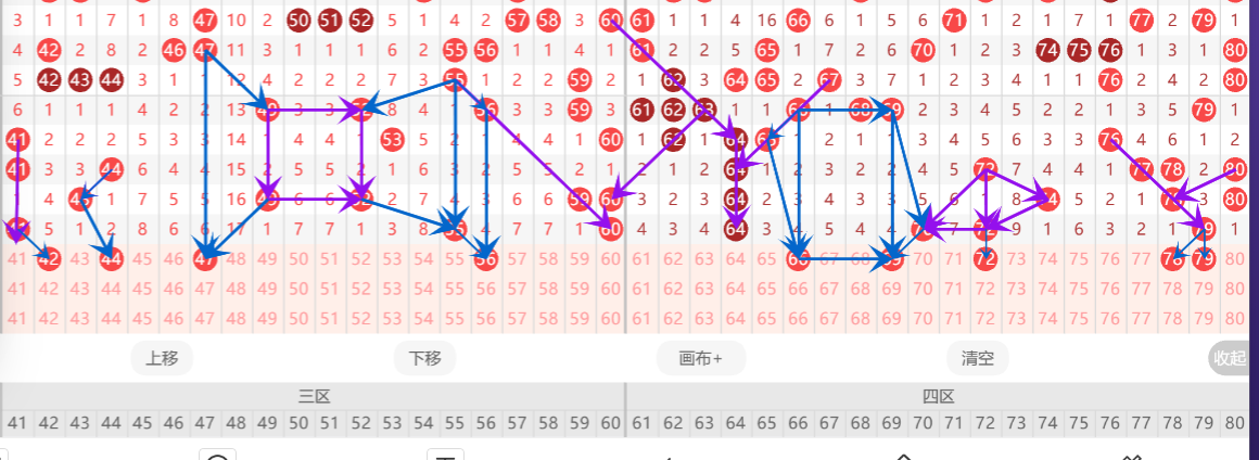 上一期第四区间开出:64/70/72/79这四个号码,整体是冷态,那么本期第四区间根据走势来判断我有以下几点建议。