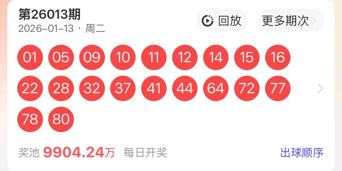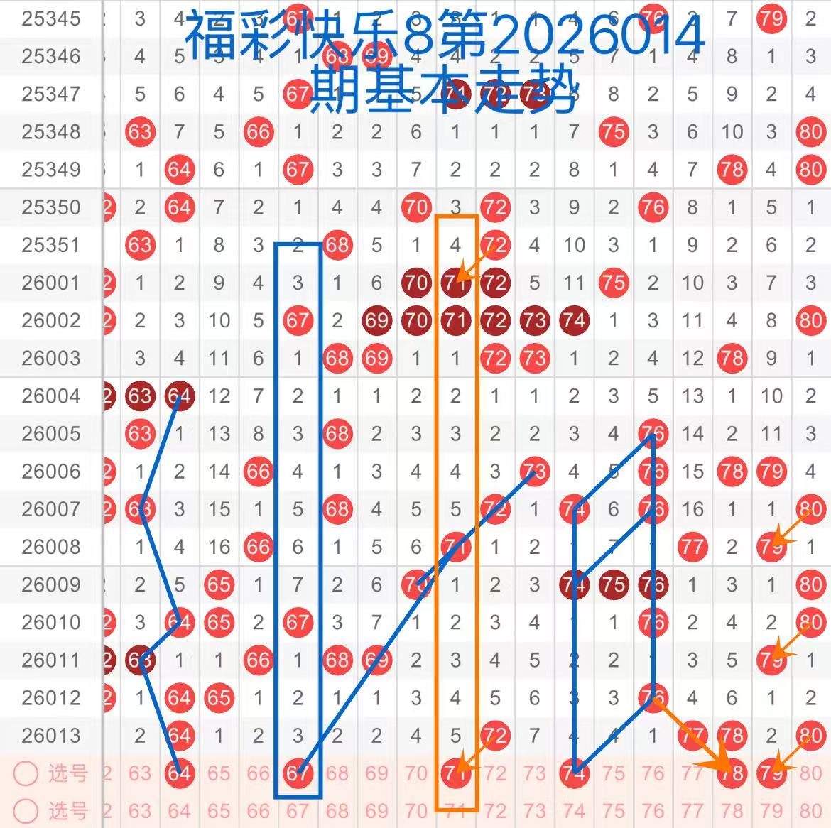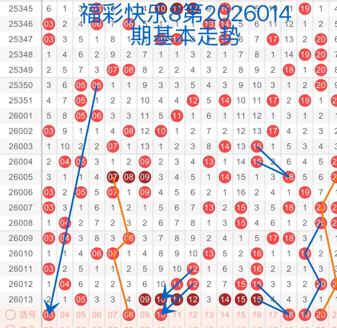 下面是我对2026014期福彩快乐8的分析和预判,希望通过我的分析能让大家今晚大满贯!福彩快乐8上期开奖号码如下图