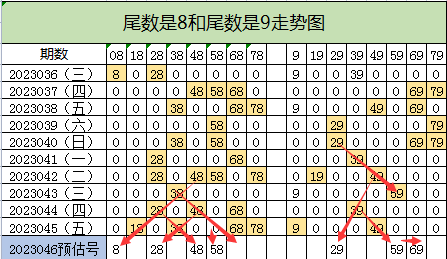 尾数8上期开出4个号码18,38,68,78,这个尾数近期开出的号码走出一个蜘蛛网走势,