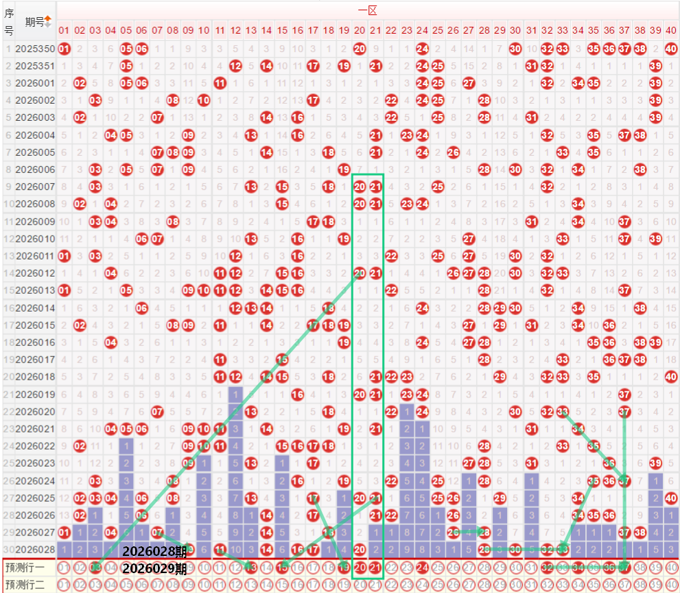 如图所示:在本期小数区的选号中,注意在上期的走势中一区间开出了6枚中奖号码,区间的落号数量保持着上升走势,在上期的走势中回补了连号走势,因此本期的一区间整体走势继续保持着均值或者是均值以上的落号水平可能性还是比较大的,本期注意关注在上期14开出重号第三期走势之后,本期注意13 15的边号走势,以及在上期一区间同时开出了11 14 17的同路三码走势,目前的14已经保持了重号三期的走势,本期注意17或者是20的重号走势,参考上期的一区间1字头已经出现了连号的回补走势,因此本期在考虑17或者是20的重号下要注意连号的走势,个人较为看号20的重号走势,以及19 20 21的三连号走势,二区间上期开出了4枚中奖号码,落位在区间的最低位,但是差值并不是很大,其落号形态也是近期较为热门的偶数连号走势28 30 32,本期注意重号的走势,以及整体向后偏移保持着同形态的错位走势,重点关注32 34 36 37的多码走势。