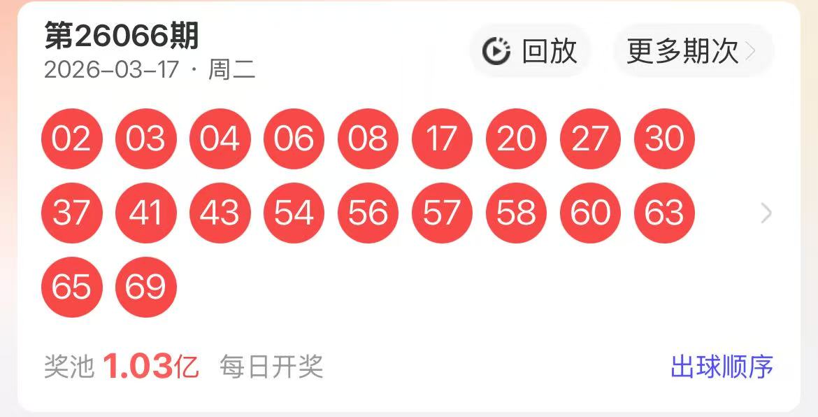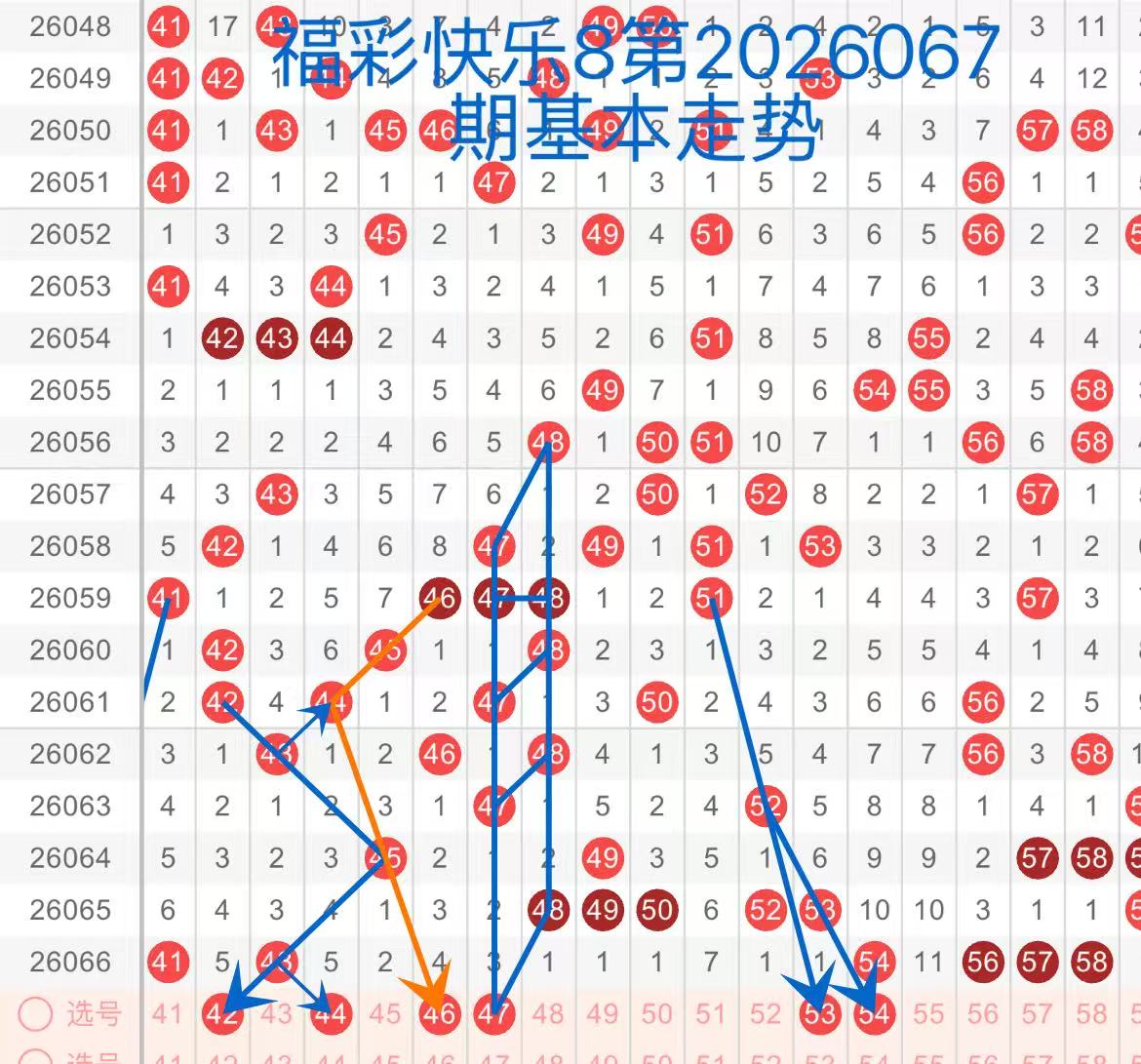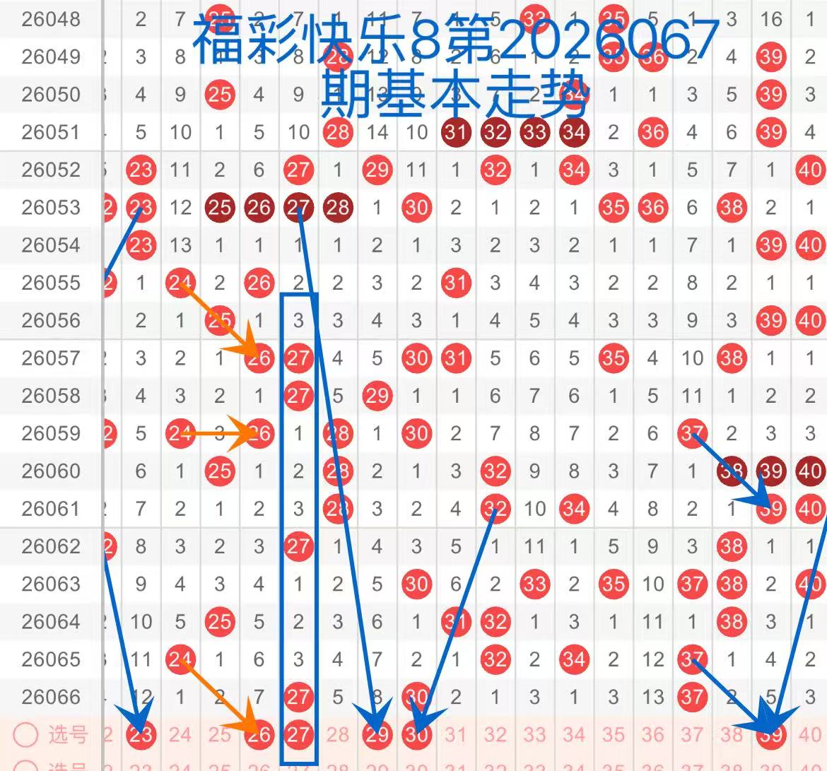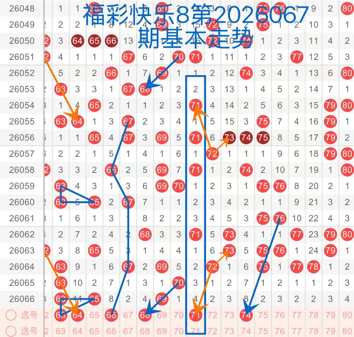 下面是我对2026067期福彩快乐8的分析和预判,希望通过我的分析能让大家今晚大满贯!福彩快乐8上期开奖号码如下图